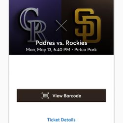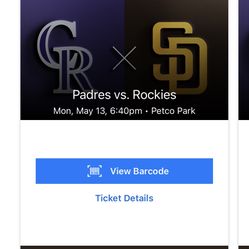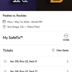 Padres Rockies Monday May 13th Four Tickets$10San Diego, CA