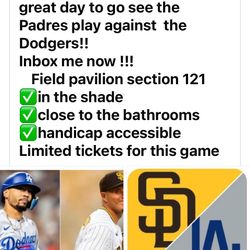 Padres Vs Dodgers TWO Tickets$150Bonita, CA