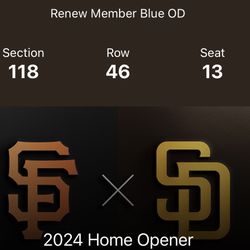 Single Opening Day March 28 Thursday San Diego Padres Vs San Francisco Giants Sf Toyota Terrace Section 220$120San Diego, CA
