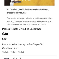 San Diego Padres Tickets For Saturday $180Lemon Grove, CA