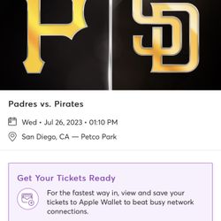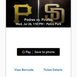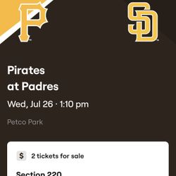 Padres vs. Pirates - Wednesday July 26th - TWO TIX$25San Diego, CA