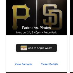 3 Padres Vs Pirate Tickets$25San Diego, CA