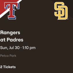 Padres vs. Rangers - Sunday July 30th, 2023- TWO TIX$42San Diego, CA