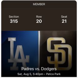Los Angeles Dodgers vs San Diego Padres August 5th 2 tickets$170Chula Vista, CA