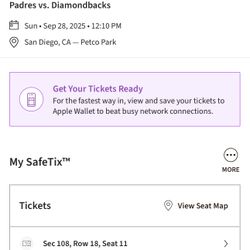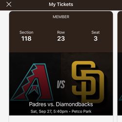 2 Tickets Padres Vs Diamondbacks 9/26 $40San Diego, CA