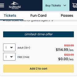 4 Sea World 🌊 San Diego Tickets for any date of August or September- 50$ each$50San Diego, CA