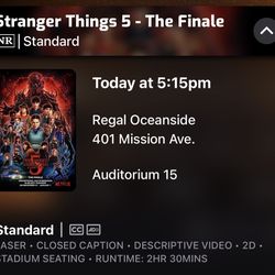 (2) Stranger Things Finale Tickets (Oceanside Regal 5:15)$20Oceanside, CA