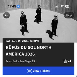 Rufus Du Sol Tickets- San Diego Petco Park$415San Diego, CA