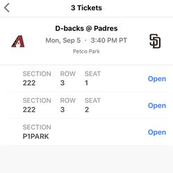 Padres tickets 8/20$45Chula Vista, CA