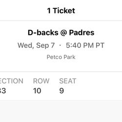 Dbacks @ Padres 9/5 $140El Cajon, CA