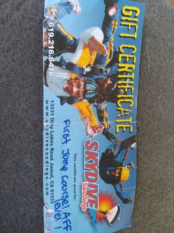 Skydiving Gift Certificate$300San Diego, CA