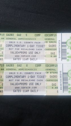 2 tickets to Jim Gaffigan TONIGHT AT THE FAIR. Can email you copy of tickets$60San Diego, CA