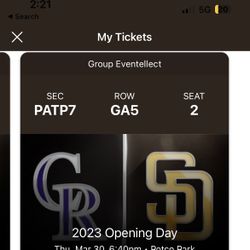 Pair Of Opening Day Tickets $75 Each- $150 For The Pair Selling Asap!$150San Diego, CA