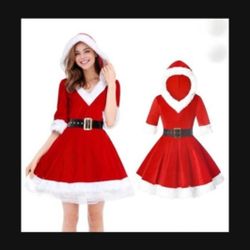 Women Christmas Mrs.Claus Santa Sexy V-Neck Velvet Hooded Mini Dress with Belt$45Chula Vista, CA