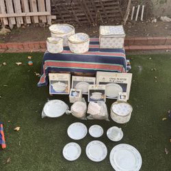 MINT UNUSED Vintage Christine Fine Porcelain China Set – 99 Pieces for 12 (Plates, Bowls, Cups + Serving Extras), Original Boxes & Covers! $199San Diego, CA