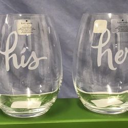 KATE SPADE TWO OF A KIND STEMLESS WINE GLASSES 857835 HIS HERS NEW$35San Diego, CA