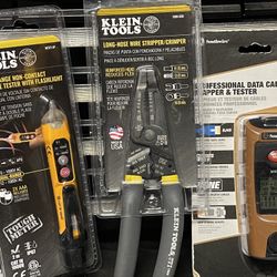 KLEIN TOOLS DUAL- RANGE NON- CONTACT VOLTAGE TESTER & Long -Nose Wire Stripper/ Crimper AND SOUTHWIRE Profecional Data Cable Mapper &tester 3 For$45$45Chula Vista, CA