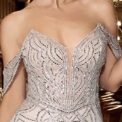 Off shoulder silver nude formal dress$180San Diego, CA