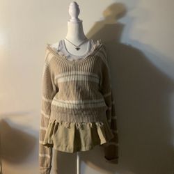 Off shoulder tan beige striped sweater jumper$15Chula Vista, CA