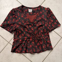 Meadow Rue Anthropologie Top Womens L Peplum Short Sleeve Faux Wrap Floral$20Poway, CA
