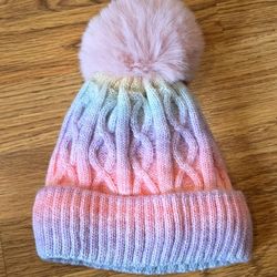 Pastel Rainbow Knitted Beanie with Pom-Pom$4Chula Vista, CA
