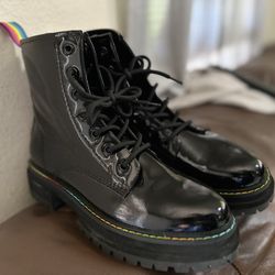 Kurt Geiger London Black Patent Combat Boots – Size 39 – Pride Rainbow Stitch – Worn Once$120San Diego, CA