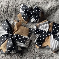Handmade Wreath Bow Everyday Bow Black & White Gray Lot Of 3 Beautiful New$25San Diego, CA