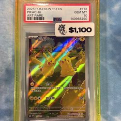 Pokemon Pikachu 151 Gather Chinese Exclusive PSA 10$1,100San Diego, CA