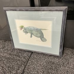 This is a framed art print of a manatee watercolor illustration$40El Cajon, CA