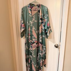 Small Silk Japanese Kim And Ono Kimono Robe Turquoise With Peacocks Like New$20San Diego, CA