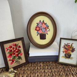 Vintage Framed Floral Needlepoint Crewel Embroidery Wall Hanging Handcrafted Collectible Art $22San Diego, CA