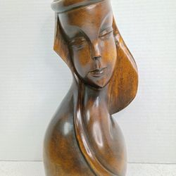 Mid Century Polynesian Hand Carved Solid Monkey Pod Wood Woman Figurine Sculpture Bust 12.5" Tall$40San Diego, CA