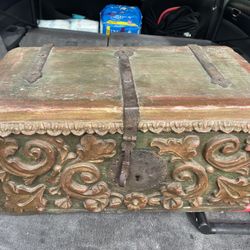 Antique Wooden Storage Chest Box Original Old Fine Hand Carved Metal Fitted$350Chula Vista, CA