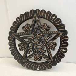 Handcarved Wooden Pentagram Wall Hanging with Hooks โ Floral Design bohemian decor$24San Diego, CA