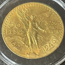 1946 $50 Gold peso 22kt $5,600San Diego, CA