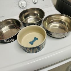 4 pets large bowls cat dog hamster rabbit chicken 3 stainless, 1 procelain Pick up by UCSD $25San Diego, CA