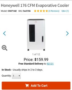 Honeywell 176 CFM Evaporative Cooler$60San Diego, CA