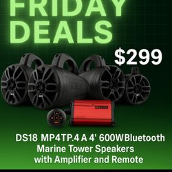DS18 MP4TP.4A 4" 600W Bluetooth Marine Tower Speakers with Amplifier and Remote$299Chula Vista, CA