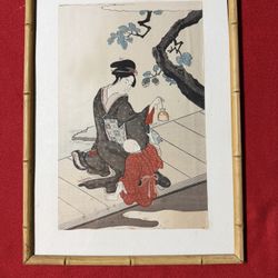 Antique Japanese Woodblock Print Eiri Hosado "A woman has A fish bottle" C 1800s$100El Cajon, CA