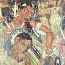 Lady Attendants palace scene Original Antique Vintage Fine Art INDIA Print Italy Poster Ajanta Caves Wall Painting 1950’s Printed Collectible$79San Diego, CA