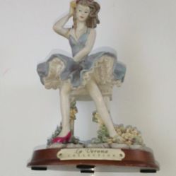 La Verona Collection Woman in Blue Dress Standing In Pink Shoes Flowers 🌸 Pose Wood Stand $20San Diego, CA