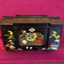 Vintage Wooden Japanese Black Lacquer Painted Jewelry Box Music Dancers Mirror No Key$20San Diego, CA