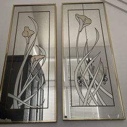 Pair Of 80’s-90’s Mirror Frosted Flower Gold Art$60San Diego, CA