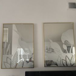 Pair Of 80’s-90’s Mirror Frosted Flamingo Gold Art$80San Diego, CA