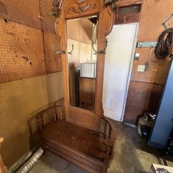 Antique Oak hall tree with bench seat, storage, unique breast fittings$300La Mesa, CA