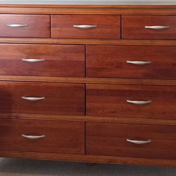 Bassett 4-Piece Cherry Wood Bedroom set (Dresser 9-Drawer, Kind Bed Frame, 2 Side tables)$500San Diego, CA