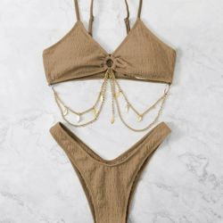 Bikini beige y verde, diseño de hojas Talla S $25Escondido, CA