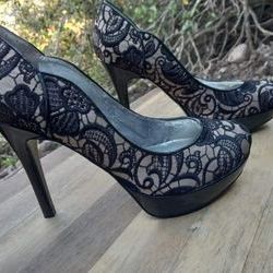 Lady's Guess Black Lace Patent Leather Platform Stiletto Heels$20San Diego, CA