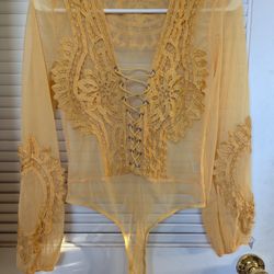 Windsor Mustard Yellow Sheer Lace Bodysuit Size Small $21Spring Valley, CA