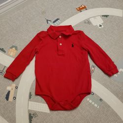 Ralph Lauren 24m Baby Boy Polo Shirt Bodysuit 100% Mesh Cotton Onesie Long Sleeves Red$25San Diego, CA